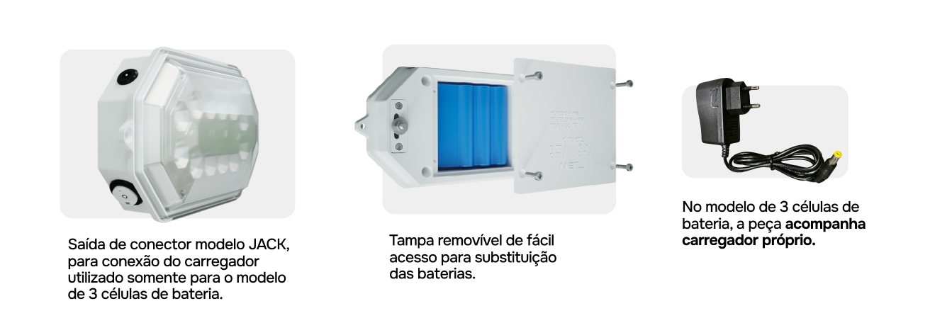 Seu baixo consumo de energia, praticidade na instalação, alinhada com sua flexibilidade de substituição das baterias, tendo opção do modelo de carregador externo, prolongando a durabilidade da peça; oferece ao cliente uma tremenda vantagem em relação ao seu custo benefício.