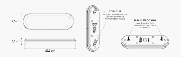 O produto pode ser também modulado, com 12 ou 24 leds, nas cores 6.500K(frio) e 3.000K(quente).